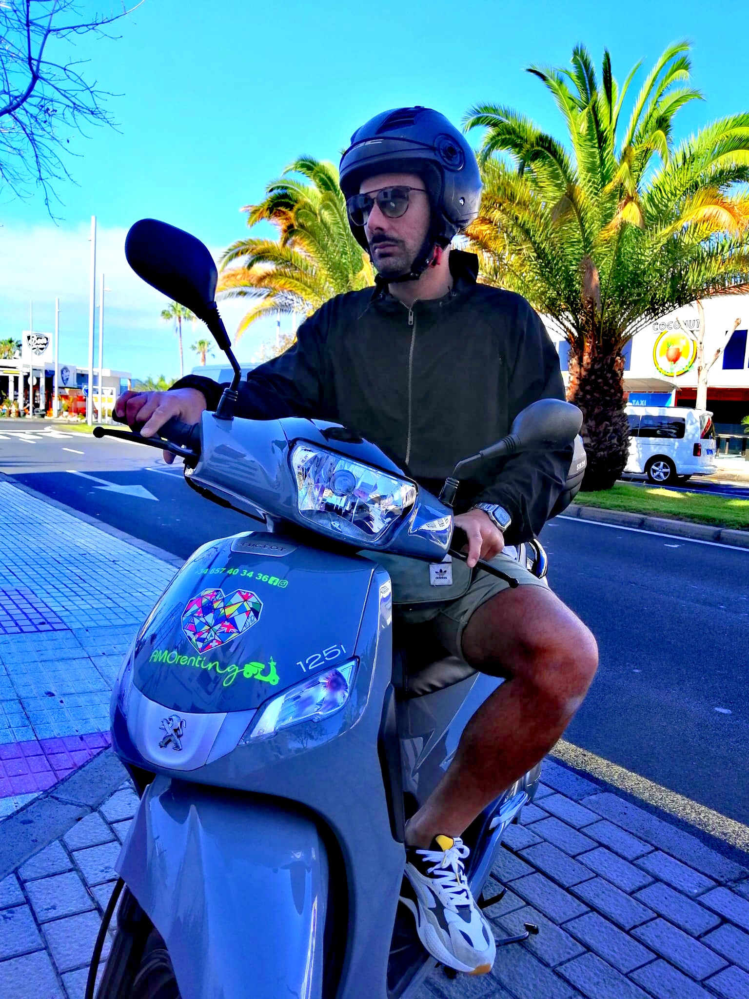 AMOrenting es una empresa de alquiler scooter Ítalo-Canaria, fundada por dos jóvenes emprendedores en la magnífica isla de Tenerife, una de las joyas de la Islas Canarias. Nuestro objetivo es que los clientes se sientan satisfechos y contentos. Poder disfrutar visitando cada rincón de la estupenda costa sur de la isla de TENERIFE. Gozar de los agradables vientos alisios en la cara. Quisiéramos también compartir el placer de ver la isla de un modo diferente, mas relajado. Moverse rápidamente y sin problemas de tráfico y aparcamiento. Ahorrar y disfrutar del tiempo a tope. Nuestros puntos fuertes son la AMABILIDAD, la SERIEDAD y la SIMPATÍA. Te sentirás como en casa, con AMOrenting. Muchas gracias para elegirnos.